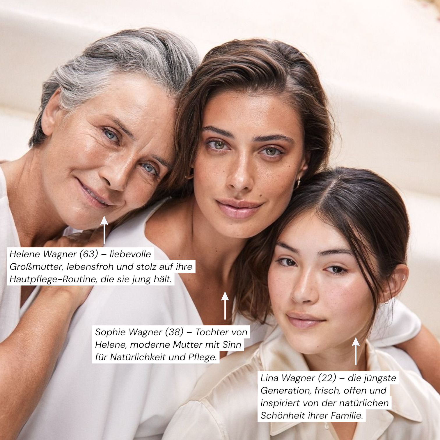 Aus einem liebevollen Familienritual entstand Nuviera – inspiriert von Helene, Sophie und Lina, drei Frauen, die zeigen, dass Schönheit kein Alter kennt.